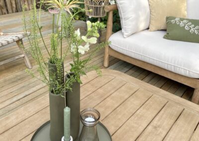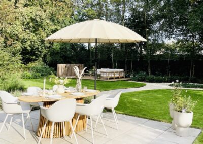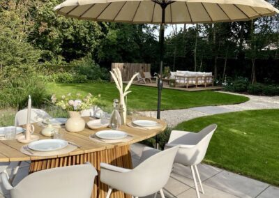 Daarna ben ik persoonlijk de inkopen gaan doen. Maar daar stopte het niet! Op locatie heb ik alles afgestijld, zodat de klant zich nergens zorgen over hoefde te maken. Het resultaat? Een droomtuin waar je niet meer uit weg wilt!